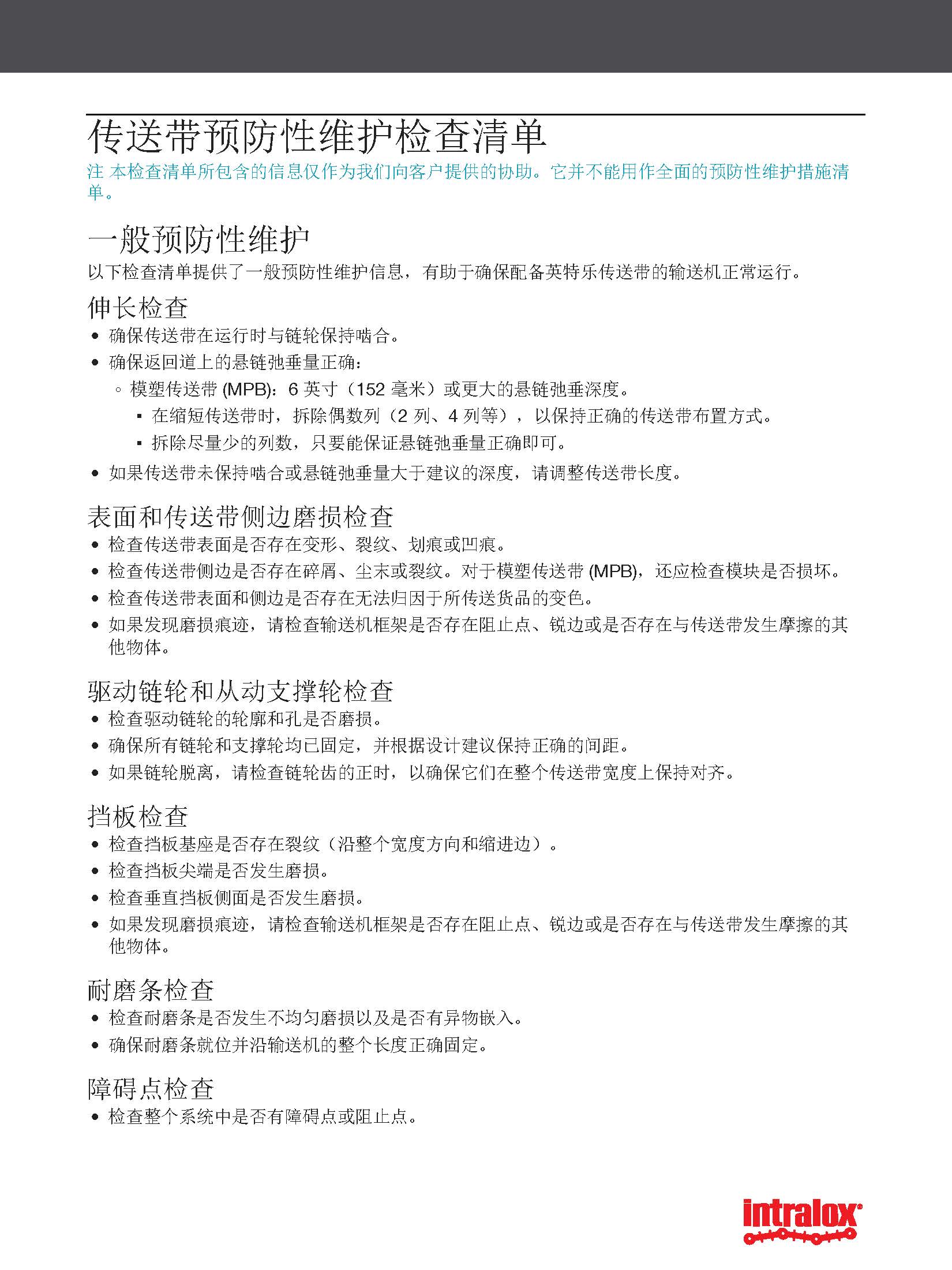 如果您发现传送带损坏,或不应发生磨损的部位发生了磨损,请检查输送机以确定原因并予以纠正。