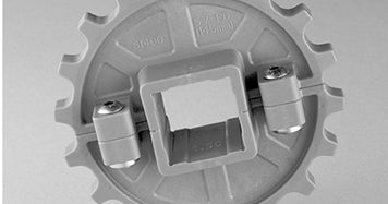L'alésage carré de 2,5 pouces est obtenu par utilisation d'un adaptateur d'alésage dans le pignon à alésage carré de 3,5 pouces.