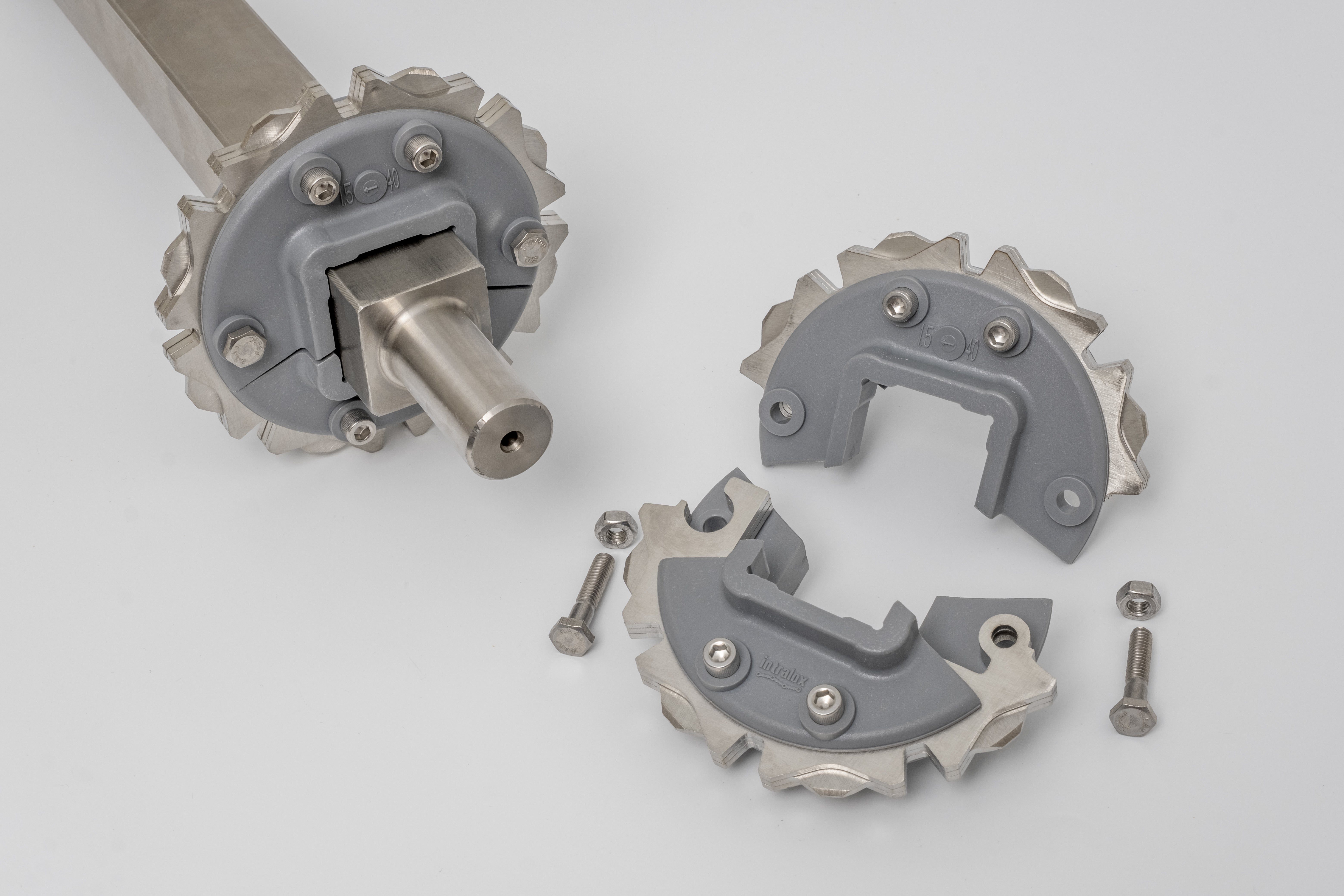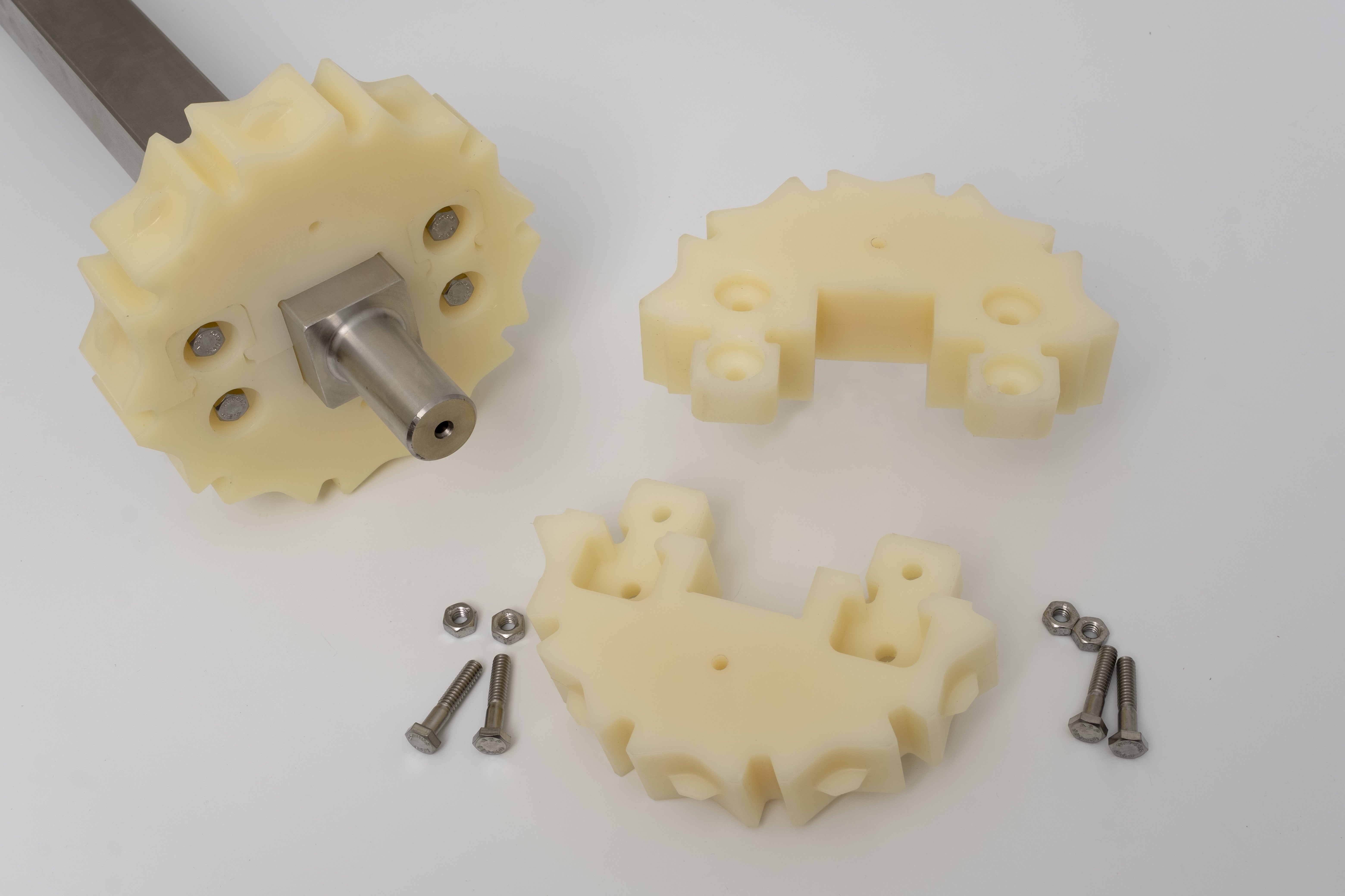 Pignoni in due metà in poliuretano ultraresistente all'abrasione (FDA)