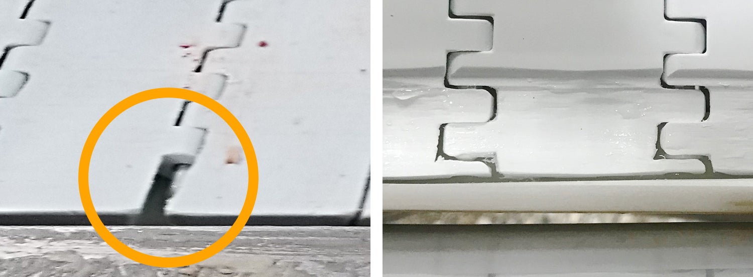 左:損傷したエッジモジュールの例 右:ベルト摩耗の例