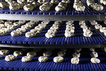 In both raw dough and panned applications, Intralox spiralox belts deliver superior results.
